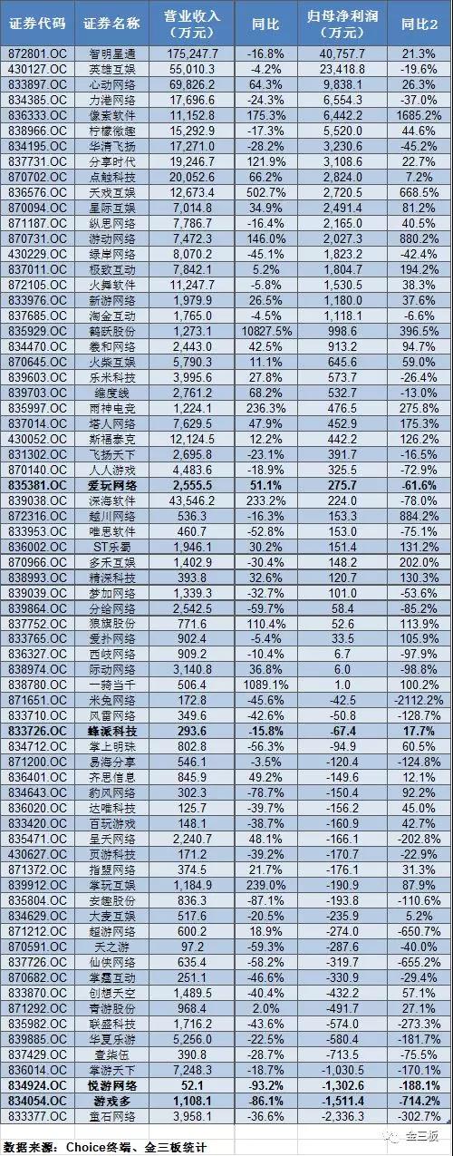 表:70家新三板游戲公司中報(bào)情況