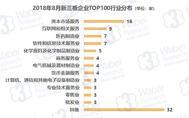 從行業(yè)分布來看,資本市場服務(wù)行業(yè)企業(yè)數(shù)量最多,有16家企業(yè);其次是互聯(lián)網(wǎng)和相關(guān)服務(wù),有9家企業(yè);醫(yī)藥制造業(yè)、軟件和信息技術(shù)服務(wù)業(yè)排名第三,均有7家企業(yè)。(來源:挖貝新三板研究院)