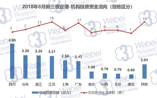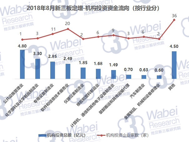 2018年8月,新三板企業(yè)共定增募資42.08億元,其中,機構(gòu)對企業(yè)投資24.89億元,環(huán)比降9.7%。機構(gòu)投資總額占新三板企業(yè)募資總額的59.1%。