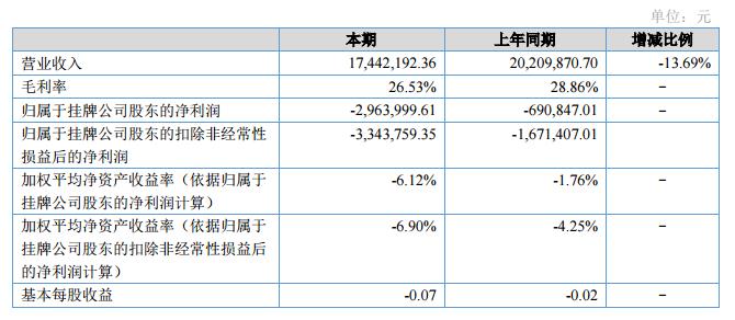 報告期內,營業(yè)收入17,442,192.39萬元,比上年同期20,209,870.70元減少13.69%,營業(yè)成本12,814,649.16萬元,比上年同期14,378,298.00元減少10.88%,公司凈利潤-2,963,999.61元,比上年同期-690,847.10元增加虧損2,273,152.51元。?