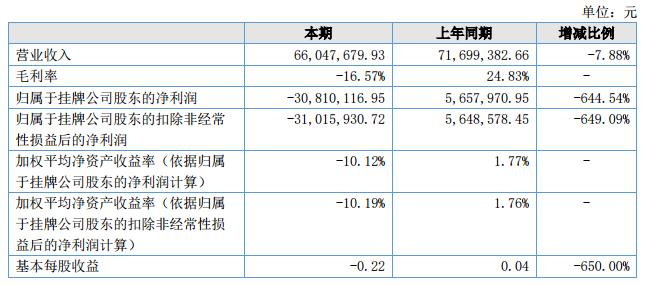公司在報(bào)告期內(nèi)的主營(yíng)業(yè)務(wù)收入66,047,679.93元,比上年度減少7.88%,公司總資產(chǎn)為396,979,288.40元,凈資產(chǎn)為299,634,903.55元。?