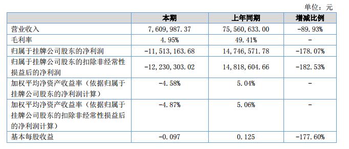 報(bào)告期內(nèi),公司實(shí)際完成營(yíng)業(yè)收入761.00萬(wàn)元,受行業(yè)訂單減少的影響及公司資金緊張不能按時(shí)供貨的原因,比同期收入減少89.93%。?