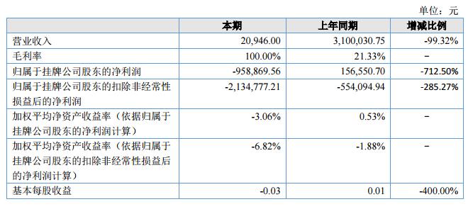 報告期內(nèi),公司實現(xiàn)營業(yè)總收入2.09萬元,較上年同期減少99.32%;公司營業(yè)利潤為-111.31萬元,同比減少187.58萬元;利潤總額-111.31萬元,同比減少136.18萬元?。