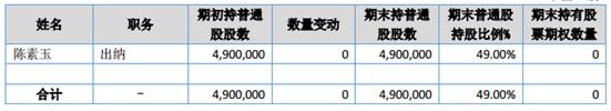 截止到2018年6月30日,陳水波為公司董事長(zhǎng)、陳淑存為總經(jīng)理、李榮宣擔(dān)任董事、財(cái)務(wù)負(fù)責(zé)人陳小玲為陳水波之女,出納為陳水清之女。