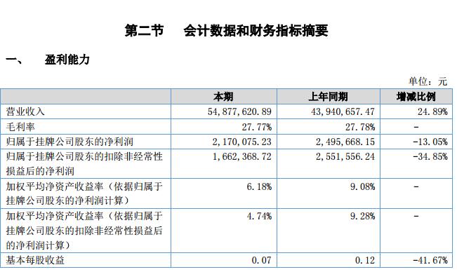 報告期內(nèi),公司實(shí)現(xiàn)營業(yè)收入 5,487.76 萬元,同比增加 24.89%。