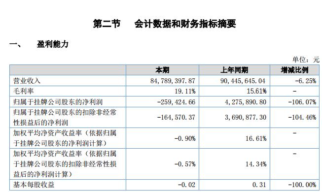 報(bào)告期內(nèi),公司經(jīng)營(yíng)實(shí)現(xiàn)營(yíng)業(yè)收入 84,789,397.87 元,同比下降了 6.25%,公司主要的經(jīng)營(yíng)模式為蘋(píng)果授權(quán)訂單,上半年訂單平穩(wěn),營(yíng)業(yè)收入略降。公司凈利潤(rùn)為-259,424.66 元,較上年同期下降 4,535,315.46 元,同比下降了 106.07%,主要系增加了研發(fā)投入,在營(yíng)業(yè)收入略降的情況下,匯率波動(dòng)及新增貸款增加了財(cái)務(wù)費(fèi)用所致。毛利率由去年同期的 15.61%上升至 19.11%,主要系國(guó)外原材料進(jìn)口供應(yīng)暢通,國(guó)內(nèi)原材料價(jià)格穩(wěn)中有降,致使平均采購(gòu)單價(jià)較去年同期下降所致。