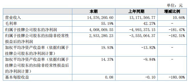 報告期內(nèi),公司實現(xiàn)營業(yè)收入1,457.63萬元,較上年同期增加10.66%,實現(xiàn)凈利潤390.70萬元,較上年同期增加171.69%。截至2018年6月30日,公司資產(chǎn)總額9,713.4萬元,凈資產(chǎn)2,256.28萬元,分別較上年增長8.96%、20.16%。?