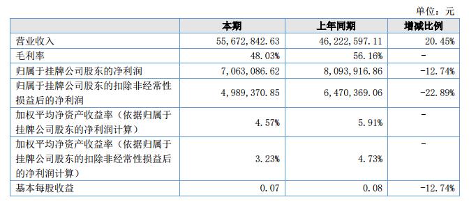 挖貝網(wǎng)9月12日,顯鴻科技(證券代碼:836619)近日公布的2018年半年報(bào)顯示,截至2018年6月30日,企業(yè)實(shí)現(xiàn)營(yíng)收5567.28萬(wàn)元;歸屬于掛牌公司股東的凈利潤(rùn)為706.3萬(wàn)元。