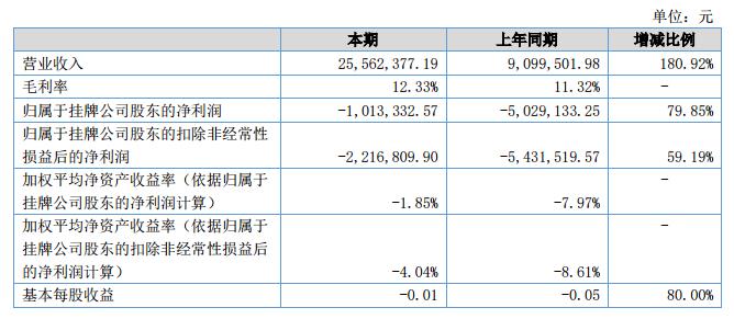 挖貝網(wǎng)9月12日,綠創(chuàng)設(shè)備(證券代碼:430004)近日公布的2018年半年報(bào)顯示,截至2018年6月30日,企業(yè)實(shí)現(xiàn)營(yíng)收2556.24萬(wàn)元;歸屬于掛牌公司股東的凈利潤(rùn)為-101.33萬(wàn)元。