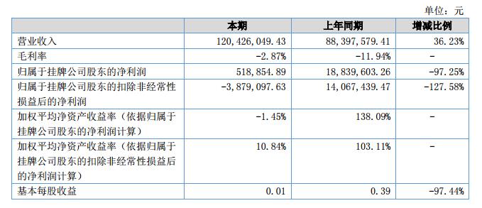 挖貝網(wǎng)9月14日,ST國龍(證券代碼:831366)近日公布的2018年半年報顯示,截至2018年6月30日,企業(yè)實現(xiàn)營收1.2億元;歸屬于掛牌公司股東的凈利潤為51.88萬元。