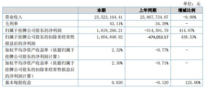 報告期內(nèi),公司總資產(chǎn)153,166,108.26元,同比去年末增加了5.07%;負債82,700,252.44元,同比去年末增加了7.5%;股東權(quán)益合計70,465,855.82,同比去年增加了2.35%,公司本期規(guī)模未發(fā)生重大變化。公司本期經(jīng)營活動現(xiàn)金流量凈額為1,637,060.32元,較去年同期增加了4610747.08元,主要系公司實施了客戶篩選機制,優(yōu)質(zhì)客戶有效促進了回款。本期凈利潤1,619,266.21-元同比去年增加了2,133,858元。?