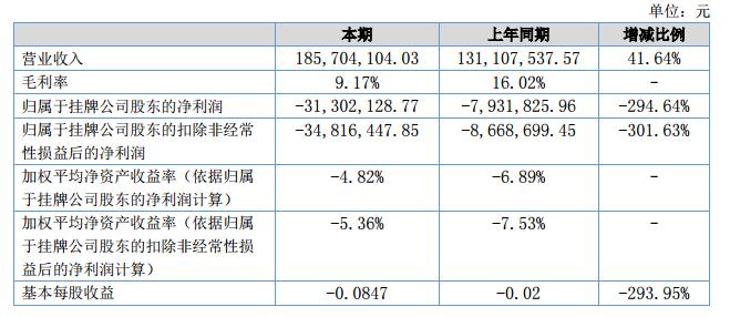 報告期內(nèi),公司圍繞年度經(jīng)營目標(biāo)和計劃,積極開展各項工作。2018上半年,實現(xiàn)營業(yè)收入18,570.41萬元,較去年同期13,110.75萬元增長了5,459.66萬元,增長率41.64%;凈利潤虧損3,219.51萬元,較去年同期虧損783.62萬元增加虧損2,435.89萬元;實現(xiàn)經(jīng)營性現(xiàn)金流量凈額5,589.83萬元,較去年同期增加2,449.53萬元。報告期內(nèi)產(chǎn)品綜合毛利率9.17%,較同期下降6.85%。?