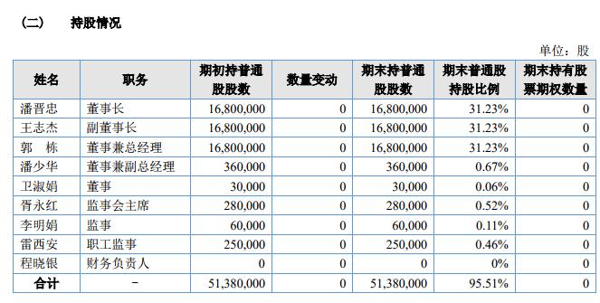 據(jù)挖貝網(wǎng)了解,2018年9月13日股東潘晉忠、郭棟、王志杰在全國中小企業(yè)股份轉(zhuǎn)讓系統(tǒng)通過盤后協(xié)議轉(zhuǎn)讓方式合計(jì)完成268.8萬股的減持,權(quán)益變動(dòng)前潘晉忠、郭棟、王志杰合計(jì)持股90%,權(quán)益變動(dòng)后持股比例合計(jì)為85%。