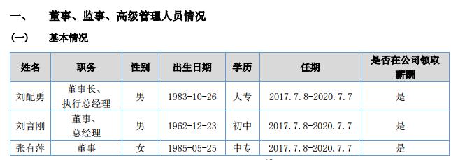 公司董事會(huì)最高學(xué)歷為大專,還有初中學(xué)歷,所有高管里,只有一位具有碩士學(xué)位,本科一位都沒有。