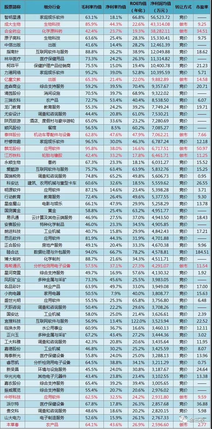 考慮到新三板公司大多體量較小,財(cái)務(wù)指標(biāo)會(huì)有所失真,因此三胖哥再加上一條,凈利潤不低于3000萬元。