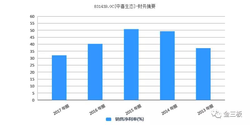 比如新三板有一家叫中喜生態(tài)(831439.OC)的公司,過去五年的銷售凈利率都在30%以上。