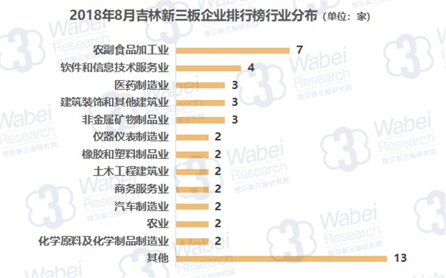 從行業(yè)分布來看,農副食品加工業(yè)的企業(yè)數(shù)量最多,有7家企業(yè);其次是軟件和信息技術服務業(yè),有4家企業(yè)。(來源:挖貝新三板研究院)