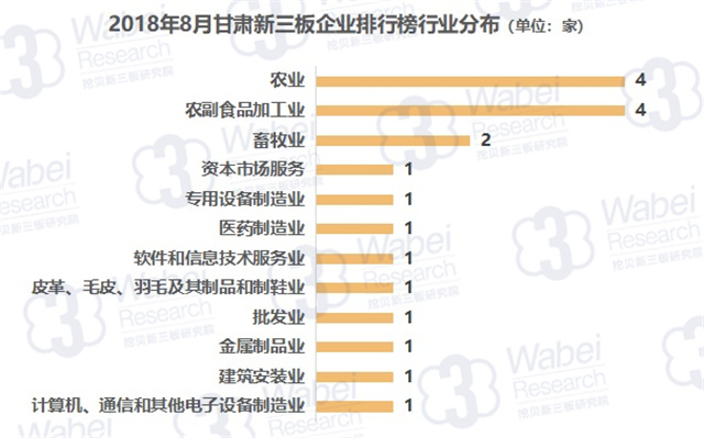 從行業(yè)分布來看,農(nóng)業(yè)、農(nóng)副食品加工業(yè)的企業(yè)數(shù)量最多,均有4家企業(yè);其次是畜牧業(yè),有2家企業(yè)。(來源:挖貝新三板研究院)