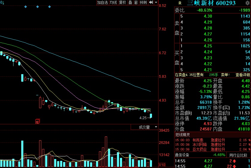 回購(gòu)前期,三峽新材股價(jià)持續(xù)下跌。8月8日開始回購(gòu)股份,公司股價(jià)維持在4元/股至5.1元/股。今日,三峽新材股價(jià)報(bào)收于4.25元,是盤中最低價(jià),同時(shí)是自2015年9月以來的股價(jià)最低點(diǎn)。