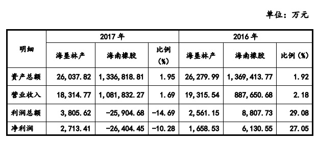 2016年、2017年海墾林產(chǎn)對海南橡膠的業(yè)績貢獻明細(挖貝網(wǎng)wabei.cn配圖)