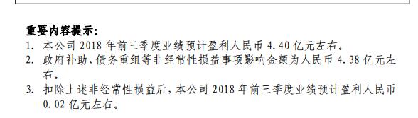 ST 油服表示,2018 年前三季度,公司非經(jīng)常性損益預(yù)計增加歸屬于上市公司股東的凈利潤為人民幣 4.38 億元左右,其中包括職工分流安置政府財政補助資金人民幣3.5億元。