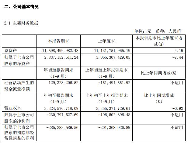 挖貝網(wǎng) 10月12日消息,方正科技發(fā)布前三季度業(yè)績(jī)報(bào)告,收入33.25億元,同比下跌0.92%。虧損2.31億元,去年同期虧損1.97億元。