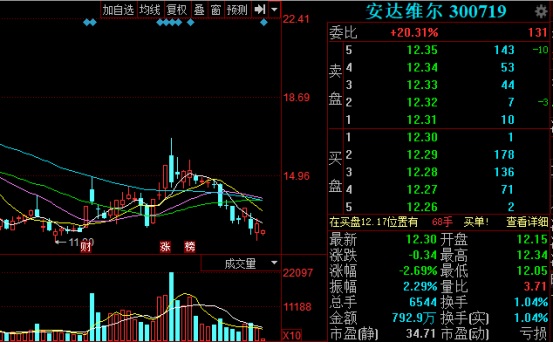 今日開盤,安達(dá)維爾低開低走。截至發(fā)稿,安達(dá)維爾股價(jià)為12.30元/股,跌2.69%。