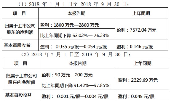 茂化實華前三季度業(yè)績預(yù)告顯示,前三季度,公司預(yù)計盈利1800萬元至2800萬元,較上年同期下滑63%至76%;第三季度,公司預(yù)計實現(xiàn)凈利潤50萬元至200萬元,同比下滑超90%。