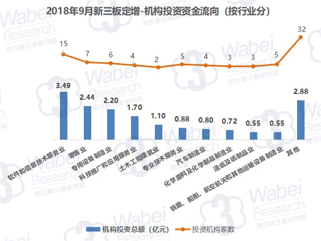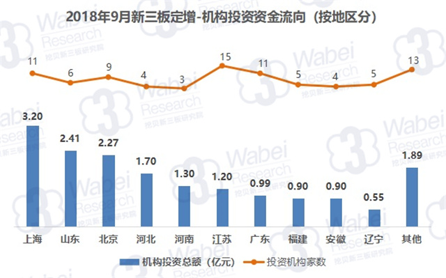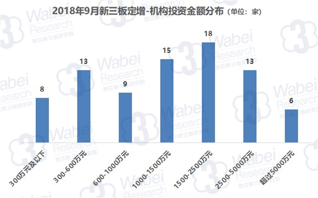 2018年9月,新三板企業(yè)共定增募資34.65億元,其中,機構對企業(yè)投資17.30億元,環(huán)比降30%。機構投資總額占新三板企業(yè)募資總額的50%。