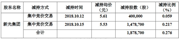 因股票質(zhì)押回購交易業(yè)務(wù)違約,2018 年10 月12日、10月15日,信達(dá)證券累計處置股票187.7萬股,從而導(dǎo)致新光集團(tuán)被動減持本公司股份0.28%的情形。