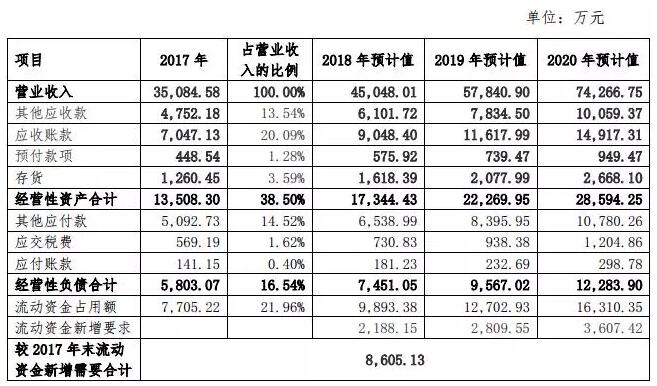 ▲新安潔預測2018至2020年流動資金占用情況