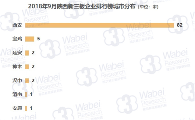 截止到2018年9月30日,新三板共有10946家掛牌公司,陜西有157家新三板企業(yè),占比1.4%;其中95家企業(yè)有市值,占比60.5%。