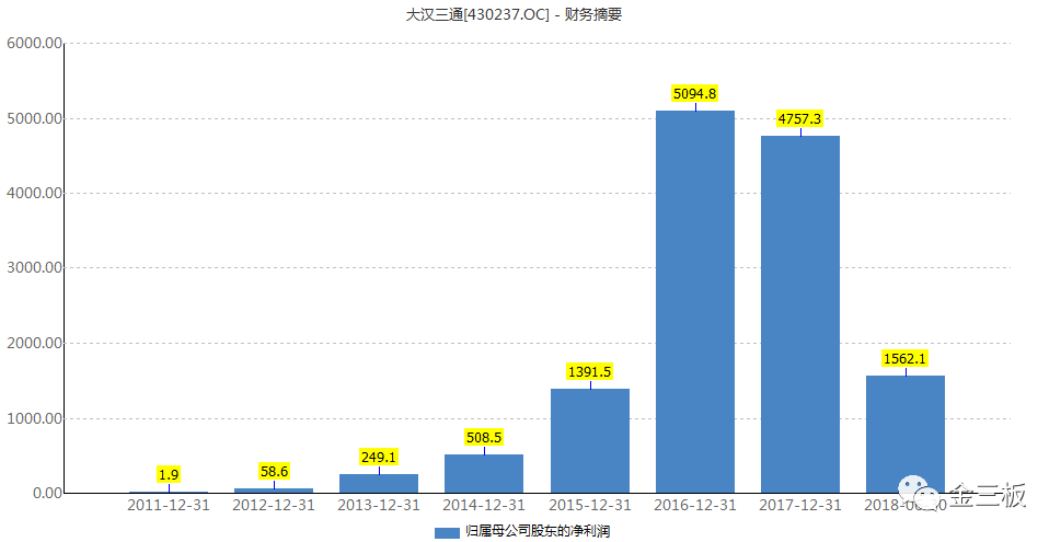 交出如此漂亮的成績單,自然讓大漢三通成為了新三板上的大牛股。