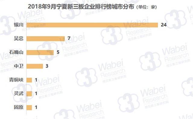 截止到2018年9月30日,新三板共有10946家掛牌公司,寧夏有63家新三板企業(yè),占比0.6%;其中42家企業(yè)有市值,占比66.7%。