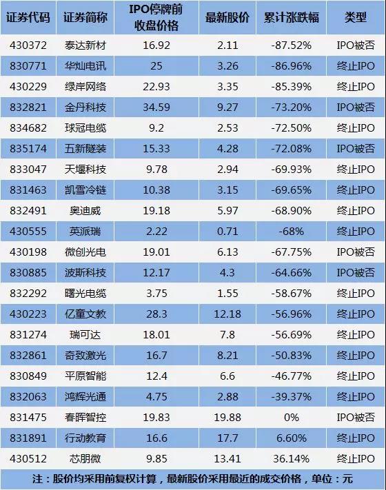 再如華燦電訊,2016年6月30日,其因IPO停牌前收于25元/股。2017年12月8日,公司董事會通過決議,宣布撤回上市申請文件。