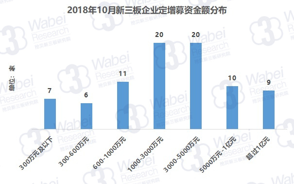 挖貝新三板研究院最新出爐的《2018年10月新三板企業(yè)定增募資報告》顯示,上月,天士營銷(872087)募資金額最大,為5.2億元;慶泉寵物(871608)募資金額最小,為90萬元。