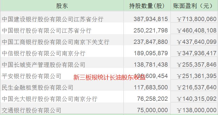 2015年中報顯示,交通銀行減持1170多萬股,中國銀行江蘇省分行減持4292萬股。2015年三季報時,中國銀行江蘇省分行減持近2000萬股,2015年報中再減持了955萬股,2016年一季度第三次977萬股,中報時又減持了100萬股,到了2016年三季度報時,再次減持200萬股,交通銀行減持了1575萬股,2016年年報時這兩家銀行又分別減持了1000多萬和730萬。臨近2017年一季報時,民生金融租賃加入了減持的行列,減持4300多股,而中國銀行江蘇省分行減持增加到8400萬股。