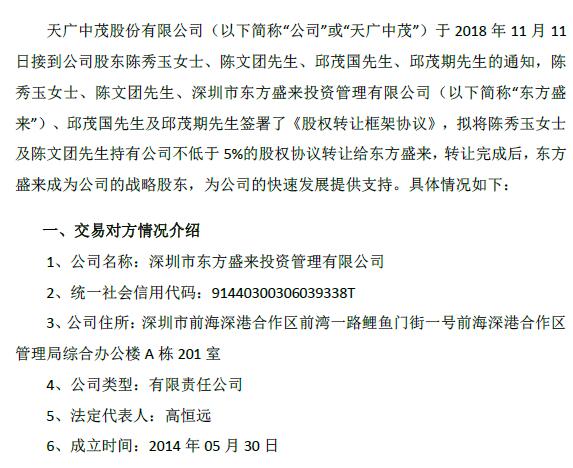 東方盛來擬收購天廣中茂
