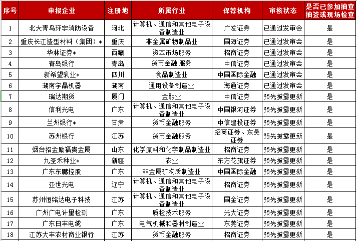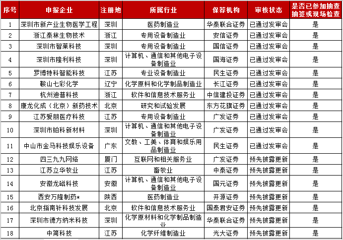 本周深交所創(chuàng)業(yè)板IPO排隊(duì)企業(yè)名單如下: