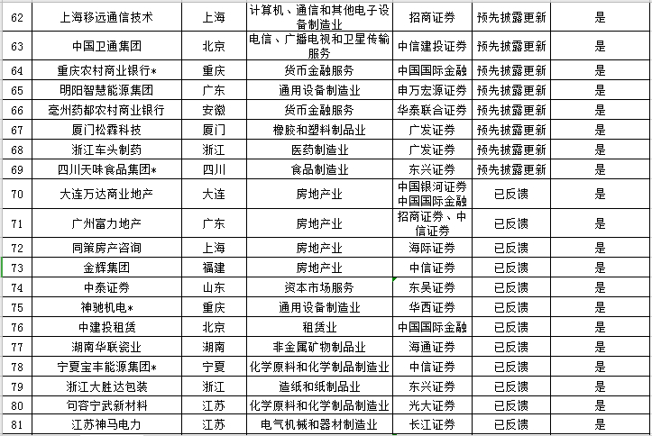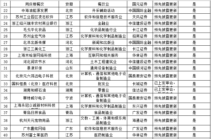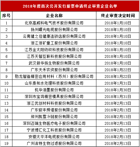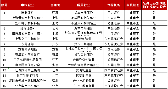 本周中止審查企業(yè)名單如下: